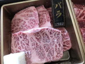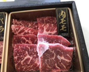 私が買ったのは、三種類の詰め合わせでの「焼肉懐石」イチボ・バラ(カルビですね)・モモ。